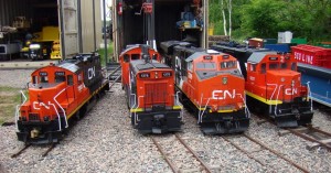 This past Thanksgiving weekend, they held their annual event to which they invite the public . They have a wonderful set of CN diesel models as can be seen in these images. Three of these four CN Diesels (plus a 4-4-0 steam engine which is not shown) were built by the gentleman in the middle of the group photo who is not wearing a hat. He is Reynald Proulx, a retired foreman from the Davie Ship Building company.