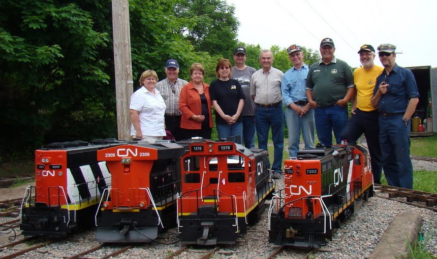 This past Thanksgiving weekend, they held their annual event to which they invite the public . They have a wonderful set of CN diesel models as can be seen in these images. Three of these four CN Diesels (plus a 4-4-0 steam engine which is not shown) were built by the gentleman in the middle of the group photo who is not wearing a hat. He is Reynald Proulx, a retired foreman from the Davie Ship Building company.