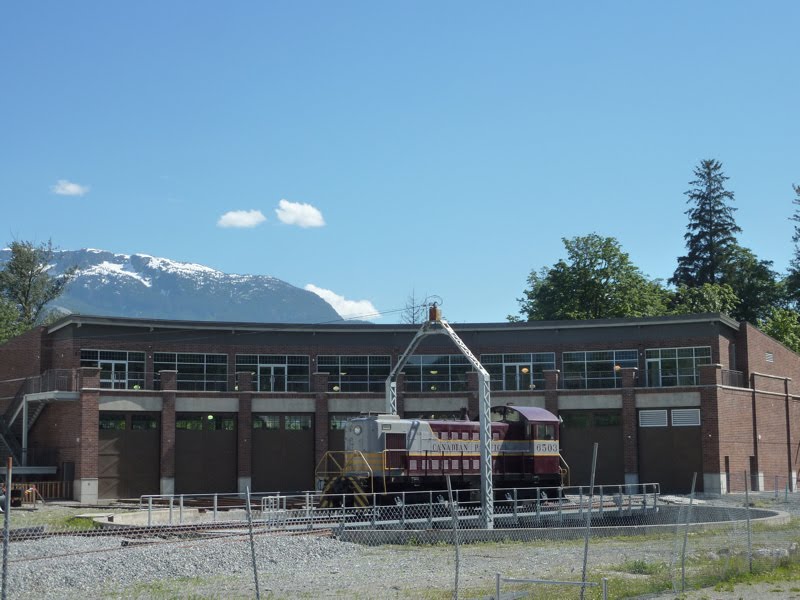 As seen in the image behind the steam engine, the large white building houses one of their restoration workshops. This is a Pacific Great Eastern car repair shop built in 1914 which was in service until 1991. In that year, it was moved in one piece over 2 kilometres and placed in its present location. It was subsequently restored and reinforced with a machine shop added on one side.