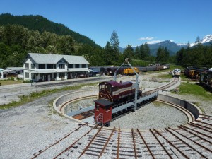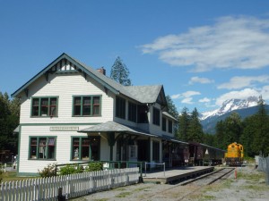 “In 1915, the Pacific Great Eastern Railway had grand plans for Squamish. This was to become the railway’s home base, and a large railway station was designed for the town. Unfortunately, all of the grand plans would not make it to fruition, as construction costs far outstripped the resources available.The railway ultimately was rescued by the Province of British Columbia and was completed to Quesnel. But the planned major station for Squamish was among the projects never completed. Until year 2000, that is. In 1999 construction started on the station building 85 years after it was designed, and on August 19, 2000, the station opened as the centrepiece of the Town Centre at the West Coast Railway Heritage Park! The drawings were discovered as the Heritage Park worked with BC Rail, today’s major railway through the centre of the province that grew from the Pacific Great Eastern. The station design was perfect for the Heritage Park in both size and room space.”