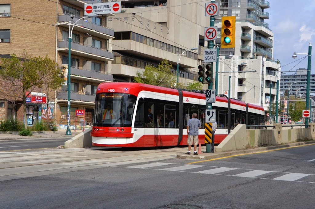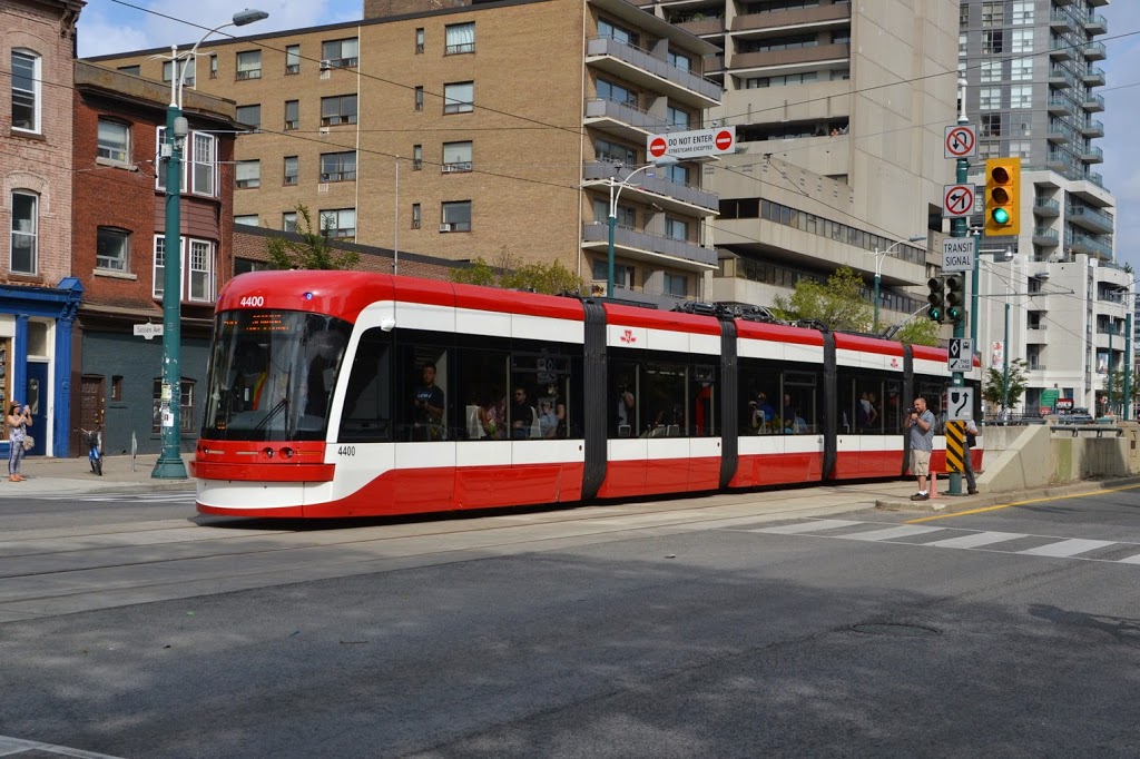 One of our TRHA volunteers, Lance Gleich was fortunate to be in the right place at the right time and captured images of the first revenue run of the new TTC streetcars. In the photos below, we find car #4400 surfacing at Sussex Avenue yesterday on its first run. Lance also snapped a picture of Jim Gardiner, another of our TRHA volunteers who was on board the streetcar for its first run. The last picture is of #4403, which was also put into service that day.