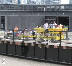 #2: Despite that most of our site was an off-limits construction zone during Toronto’s Doors Open in May of 2009, TRHA “got creative” and offered rides to the public on a speeder trailer from Bremner Boulevard to the turntable and then into the roundhouse itself with commentary provide by TRHA volunteers. We also, of course, provide a display of historic railway images in Union Station as well as Doors Open and monthly tours of the station. Click here and here and here for more information.