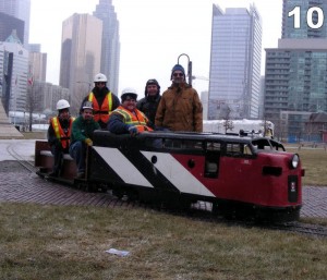 #9: In December of 2009, we successfully moved a Pyke Crane to the roundhouse after it was generously donated by the Toronto Terminal Railways Company who manage the railway trackage in and around Union Station. Here we see some of the TRHA crew involved posing with the crane on the successful completion of the move. Click here and here and here and here for more information.