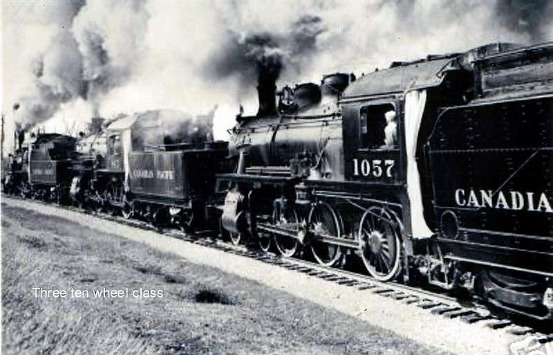 Further to the first part of this posting where we shared John Mellow’s pictures of #1057 in the 1970’s with you as well as Derek Boles’ posting of the anniversary of her first steaming up again at the South Simcoe Railway, we are bringing you a picture of #1057 as part of a triple header. The picture is from a great webpage at yourrailwaypictures.com developed by John MacDonald where he features a number of great pictures of CPR steam locomotives.