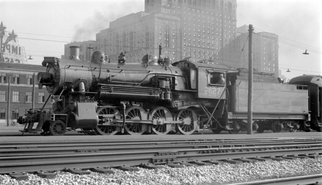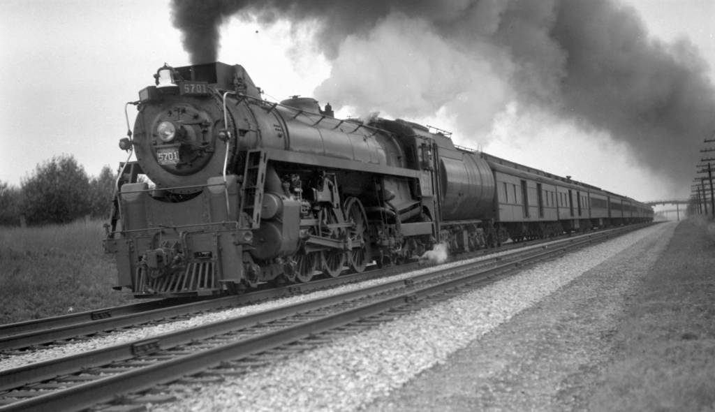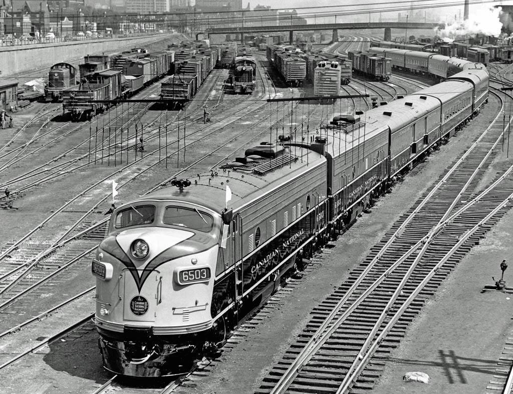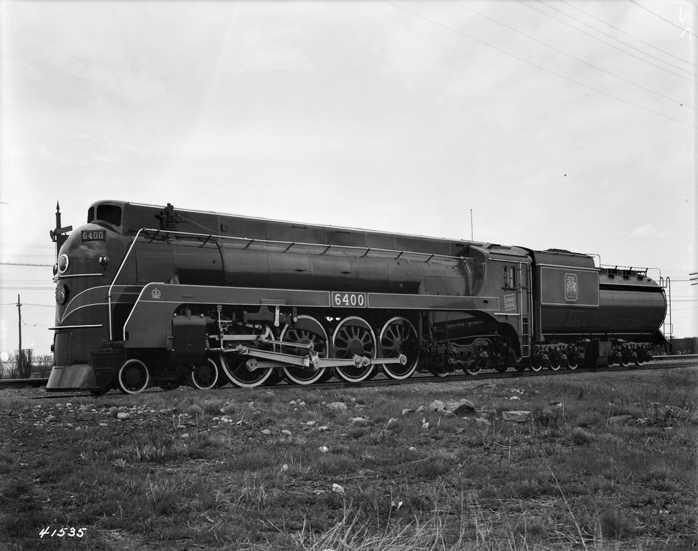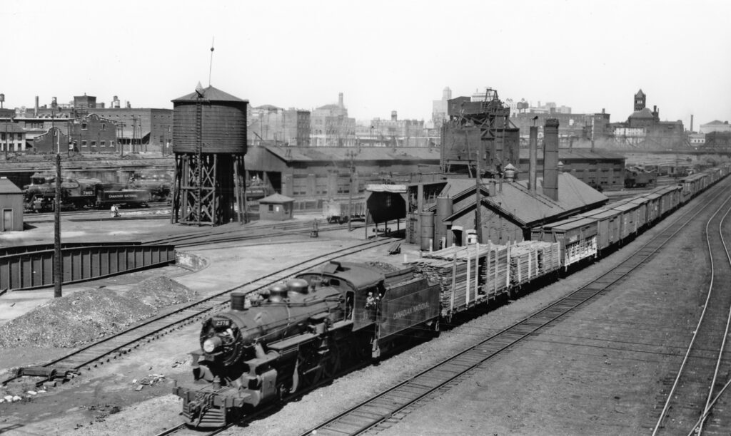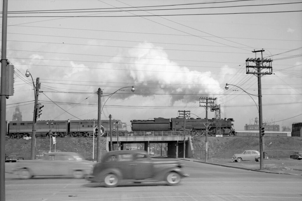 The Great Depression ended with Canada’s entry into World War Two on September 10th, 1939, resulting in the rapid adjustment of Canadian industry to serve the war effort. As the economy rebounded, Canada’s railways quickly found themselves dealing with the opposite of the previous decade’s problems in the form of higher than usual passenger and freight traffic. Troop trains ran between towns and cities across the country to military bases for newly enlisted soldiers to receive training, or to east coast ports to be shipped off to Europe. Vast amounts of goods were delivered for the war effort alone, ranging from food supplies to weapons and vehicles. The CN lines surrounding Toronto saw a significant amount of the freight traffic heading east. The crushing demands of war were the context in which CN 6213, the steam engine currently on display in roundhouse park, was built in 1942. It was one of 65 such units manufactured by the Montreal Locomotive Works around the same timeframe, having several differences and improvements over the earlier 4-8-4 locomotives on CN’s roster. Steam engines produced during the war were some of the fastest and most powerful, but they would also be some of the last. An innovation in locomotive technology that was squandered by the Great Depression would soon re-emerge.