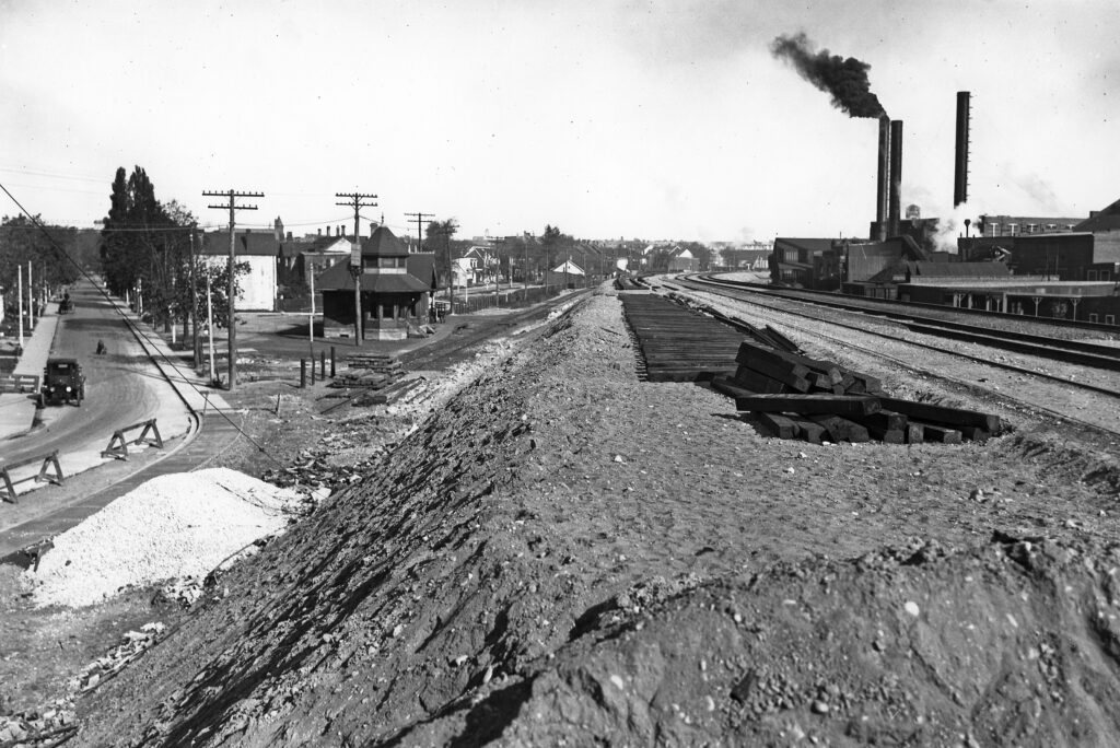 The Toronto area in particular saw its fair share of changes while Thornton oversaw the railway. The city’s main rail corridor was being actively reshaped by the Grand Trunk and Canadian Pacific prior to World War One, but the war significantly delayed progress due to labour and material shortages. The new Union Station headhouse had been completed in the Grand Trunk era, though the railways and the city had not reached an agreement yet as to who would be responsible for separating the grade of the rail corridor from the roads it crossed. In 1924 it was decided that the railways would be responsible for raising the corridor above the surrounding roads. Work on this monumental task began the following year, involving significant amounts of earth dumped where the new tracks were to be laid. Simultaneously, Thornton sought to consolidate the engine servicing terminals in the Toronto area to a single location as the ones CN inherited had varying degrees of adequacy and were spread out across the city. The newer locomotives were often too large for the turntables of these smaller engine facilities, some of which dated back 70 years. The former Canadian Northern shops in Leaside were completed in 1919 and could be considered the most state-of-the-art in the city at the time, but it would see little use after Canadian National began consolidation efforts. Mostly, the railway’s obsolete locomotives and rolling stock were scrapped there during its few years of operation. The locomotive shop closed on March 31st, 1926, and operations were subsequently moved to Stratford. The roundhouse was closed several years later in 1934. Most of these buildings were torn down over the years, but the locomotive shop remains and has been converted into a grocery store.