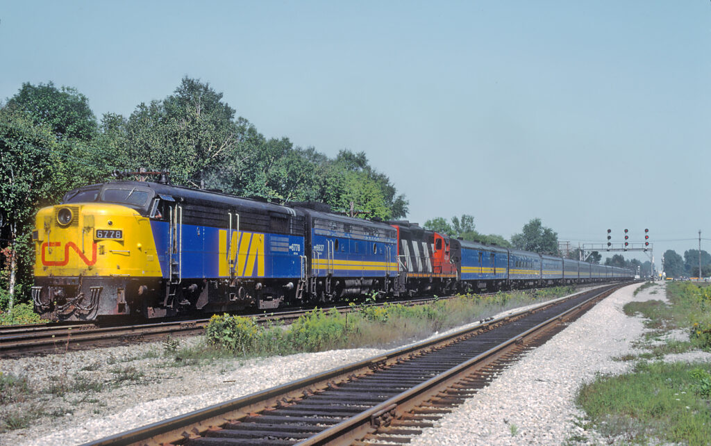 The passenger side of Canadian National’s business was further separated when it was branded as “VIA Rail” starting in 1976. VIA logos began to appear on CN’s passenger equipment, and the first timetable showing information for both CN and CP trains simultaneously was published as a VIA timetable. Canadian National’s departure from passenger was complete when VIA Rail was spun off as a separate crown corporation on January 12th, 1977. The new entity inherited all of Canadian National’s passenger equipment and routes, including the Spadina Roundhouse and its adjacent rail yard in Toronto. VIA would ultimately depart the Spadina yards in 1986 and set up the Toronto Maintenance Center in the northern half of the former CN Mimico Yard. GO Transit’s Willowbrook Rail Maintenance Facility would use the southern half of the same yard, and this arrangement persists into the modern day.
