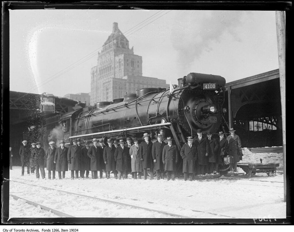 The depression was rounded off with a tour of Canada by the British royal family between May 17th and June 15th, 1939, which was facilitated through the cooperation of Canadian National and Canadian Pacific. While the latter handled the westward journey through Toronto, Canadian National would bring the train back through the city on June 6th. It was initially led by 4-8-2 Mountain type locomotive 6028 on this leg of the journey, and was briefly stopped short of Union Station by large crowds. 4-8-4 Northern type locomotive 6400 was substituted after the train arrived at Union, later bringing the train through southwestern Ontario and towards the United States.