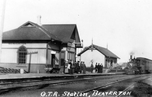 Beaverton Station was built in 1870 by the Midland Railway of Canada while its construction was progressing northwest to its namesake town of Midland, and the first train arrived on December 25th of the same year. It was located on Franklin Street near the intersection of Centre Street, though it’s unknown exactly what the building would have originally looked like due to modifications it received in later years. The railway was stalled in Beaverton for the time being, and as such a turntable was initially located near the station to turn locomotives around. Service was eventually opened beyond Beaverton to Midland in July 1879, but this arrangement under the Midland Railway would only last for a short time afterward. The larger Grand Trunk Railway leased the Midland Railway in 1884, under whom the station in Beaverton would see a total of four train departures per day. From the time it was established, the railway line Beaverton Station was situated on could be considered a “branch line”, one with a miniscule amount of through traffic and only a handful of local trains.