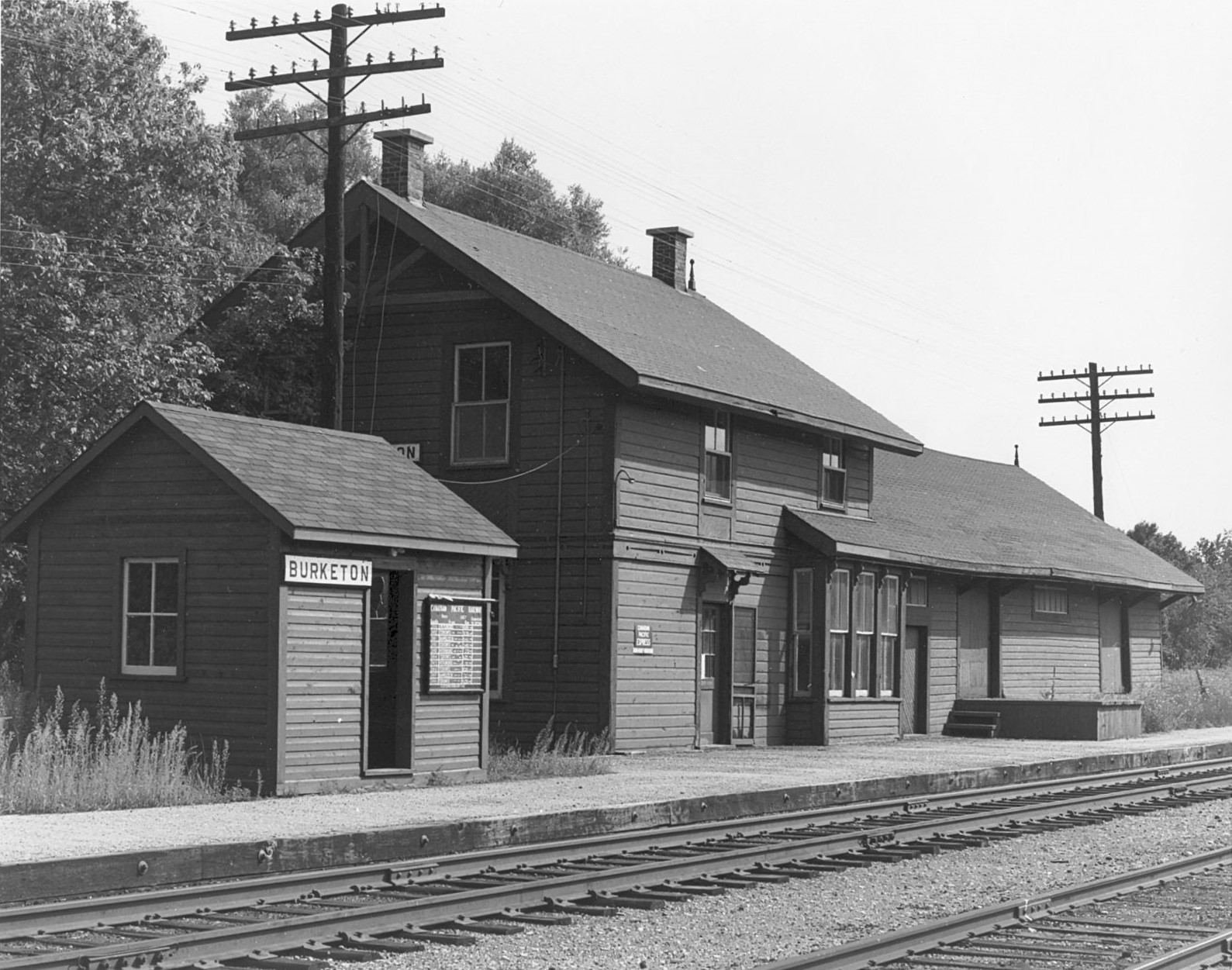 To tap into the communities and resources north of the O&Q line, the Lindsay, Bobcaygeon & Pontypool Railway was chartered in 1890 by individuals associated with Canadian Pacific. It was originally planned to have this line split off from the O&Q in Pontypool but the terrain made this unfeasible. The starting point was shifted 14 kilometres west to Burketon instead, and the LB&P split off from the O&Q a short distance east of the station. A 70-foot turntable and a two-stall engine house were built nearby, and the station was appropriately renamed Burketon Junction shortly thereafter. The first train left Burketon for Lindsay on July 28th, 1904. To reduce rail traffic congestion on the O&Q line and access the larger communities closer to Lake Ontario, Canadian Pacific built a nearly 200-mile diversion located about 20 kilometres south of Burketon in 1914. Both lines originally had enough traffic to sustain them and by 1919 service to Burketon had increased to six trains per day.