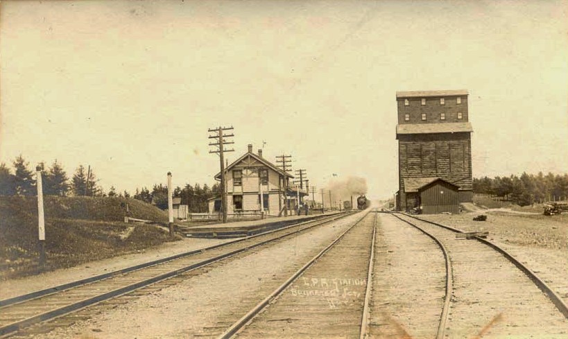 Burketon Station was built in 1884 by the Ontario & Quebec Railway in a rural area on the east side of Old Scugog Road north of Concession 10. The Ontario & Quebec existed solely on paper as a proxy of the Canadian Pacific Railway, to whom it was leased for 999 years. The station utilized the standard “Van Horne” design, which was named after William Cornelius Van Horne and was commonly built in rural areas across the Canadian Pacific system. They were rectangular wooden structures with a second floor at one end containing the station agent’s living quarters. Below that was the waiting room and station agent’s office, with a long freight room extending outwards to one side. The first train arrived at Burketon on June 28th, 1884, though regular service beyond Peterborough to Montreal did not become available until August 4th of the same year. A grain elevator was built soon afterward to facilitate the shipment of local farm products by rail. A small community called Burketon Station began to develop along Old Scugog Road and adjacent to the railway after it was opened.
