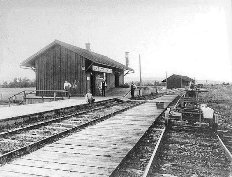 Station was built by the Credit Valley Railway in 1879 while its construction was progressing north towards Orangeville. It was a rectangular board-and-batten structure with a simple pitched roof and minimal amenities, following a standard design used extensively by the Credit Valley in other communities. The station was located on Station Street at the inconvenient distance of approximately 1.1 kilometers east of central Cheltenham, which was already directly served by the Hamilton & North-Western Railway. Station Street still retains its name in spite of the apparent lack of a train station in the vicinity. The Canadian Pacific Railway gained control of the Credit Valley through one of its proxies, the Ontario & Quebec Railway, in 1883. Cheltenham Station saw a total of four passenger trains per day that year, remaining relatively consistent into the early 20th century.