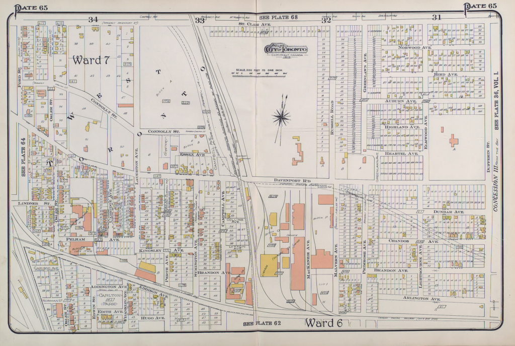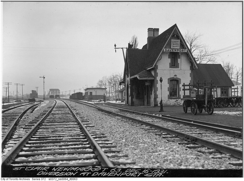 At about the start of the Great Depression at the end of the 1920’s, Canadian National embarked on a project to raise its railway bed between Davenport Road and Rogers Road. As part of this work, Davenport Station was closed to passengers on January 10th, 1932 and demolished shortly thereafter. A new passenger station was opened a short distance to the north at St. Clair Avenue.