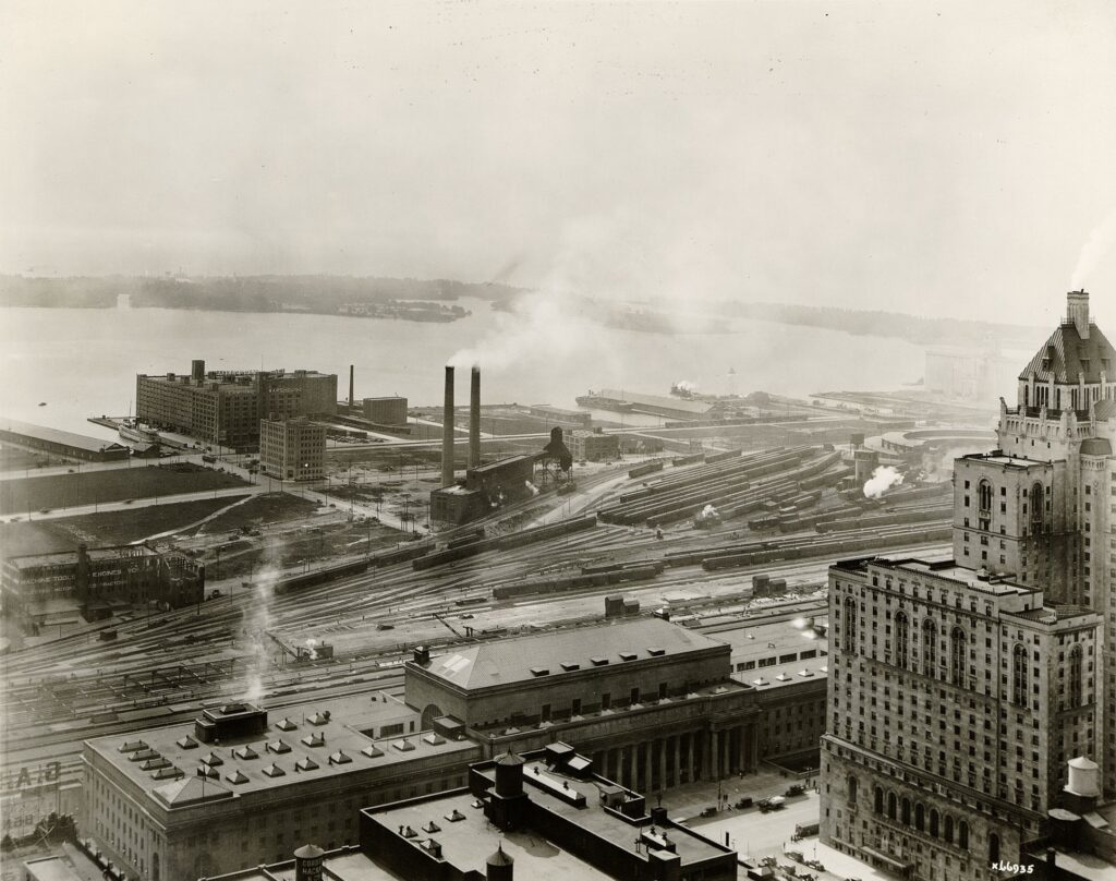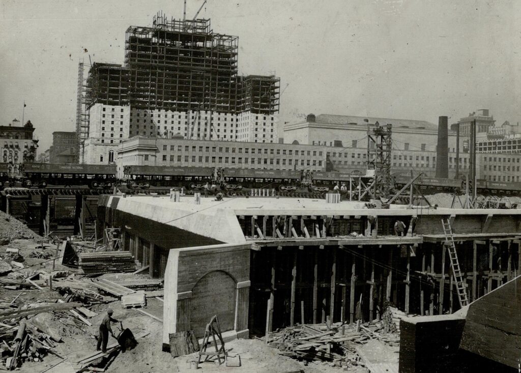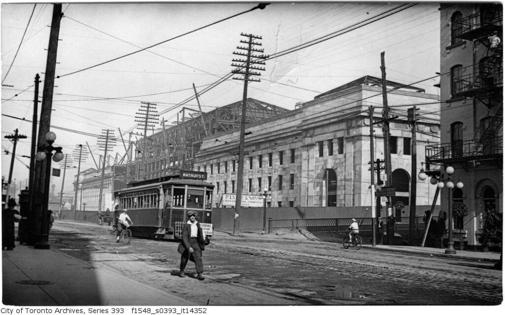 Despite the best efforts of the railway companies behind its construction, the design of Toronto’s second Union Station was fundamentally flawed and could not adequately handle the number of people using it on a daily basis. Even its 1896 expansion did not mitigate these issues for very long, and both the railways and city officials began looking for a more permanent remedy. Luckily for them – unluckily for others – multiple city blocks immediately to the east of Union Station were destroyed in the Great Fire of 1904. This opened the much-needed real estate for a new Union Station, and the land was expropriated by the Grand Trunk Railway later the same year. The Canadian Northern Railway had eyed this land for its own passenger terminal but was unsuccessful in securing it. They would instead turn their attention towards North Toronto for this purpose, and as such would stay largely uninvolved in the construction of the new Union Station.