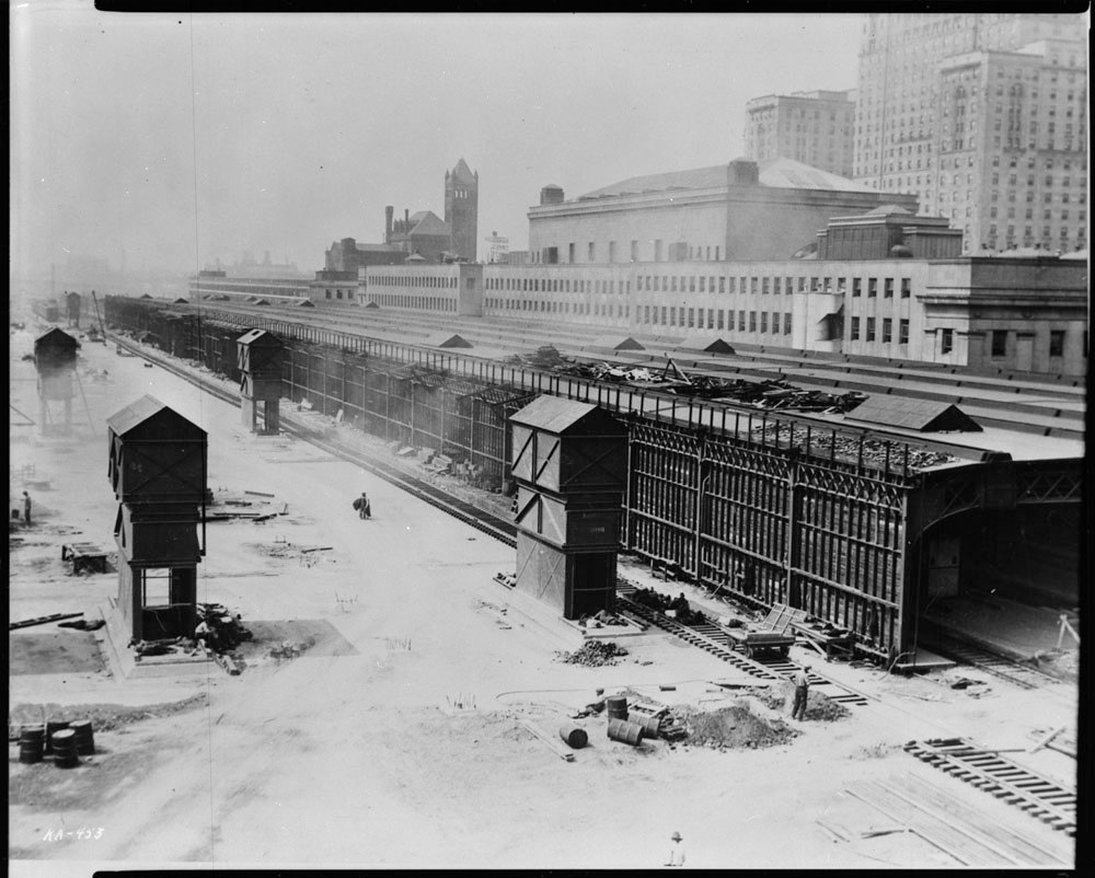 The Toronto Terminals Railway Company was formed on July 13th, 1906, with the purpose of constructing, maintaining, and operating the new Union Station. Its shares were owned in equal part by the Grand Trunk Railway and Canadian Pacific Railway who both intended to serve the station. The contract for its construction was awarded jointly by both the Canadian Pacific and Grand Trunk to the Westinghouse, Church & Kerr Company of New York in March of the same year. The contract included both the erection of the station and signaling devices in the surrounding corridor. The total cost was reported to be about $1,000,000 and it was expected to be completed by February 1908, though a variety of delays and planning changes would greatly slow down progress. Plans were submitted to the railway authorities soon afterward but little to no work was completed over the next several years, except for the removal of debris on the new Union Station site in the summer of 1912. The business relationship between Westinghouse, Church, Kerr & Company and the Grand Trunk Railway ended when the former sued the latter for a million dollars, citing breach of contract. A new contract was established with Peter Lyall & Son of Montreal two years later on July 7th, 1914. Another massive delay would come in the form of World War One which Canada would join just one month later. The war effort would divert much of the materials and labour force needed to build the station in a timely manner.