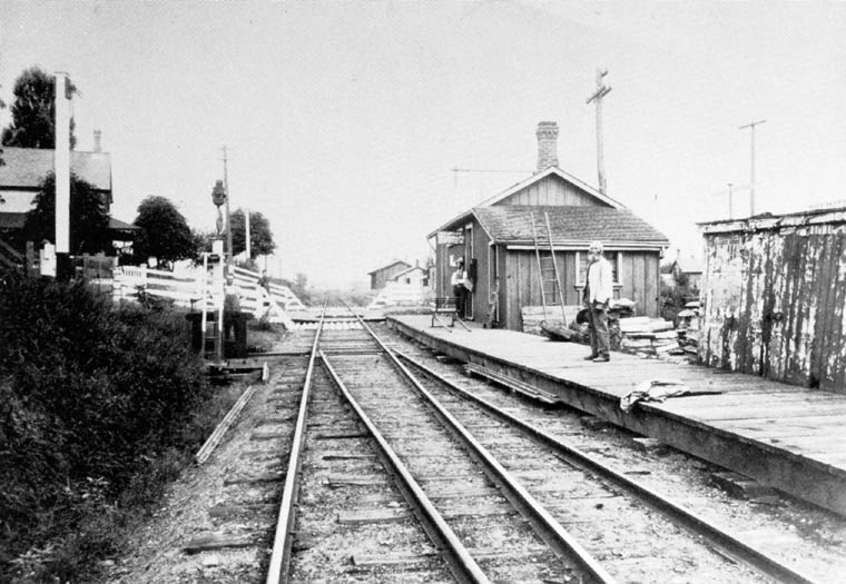 The narrow-gauge Toronto, Grey & Bruce Railway built their Weston Station in 1871 while the railway was under construction between Toronto and Owen Sound. The broad-gauge Grand Trunk Railway had already built its mainline through Weston in 1855, and the TG&B reached this point by laying a third rail inside the existing Grand Trunk line from Toronto to Weston. The shared trackage included the existing Grand Trunk passenger station in Weston, and it’s likely that the two railways shared it. The first revenue Toronto, Grey & Bruce passenger train went through Weston on September 18th, 1871, though it wouldn’t officially open until November 4th of the same year. The arrangement between the TG&B and the Grand Trunk only lasted four years when traffic from the two railways became too much to handle on the same line. The Toronto, Grey & Bruce ended up building their own right-of-way within about 25 metres from the Grand Trunk in 1875, running parallel along its east side. This is most likely when the TG&B built its own Weston Station.