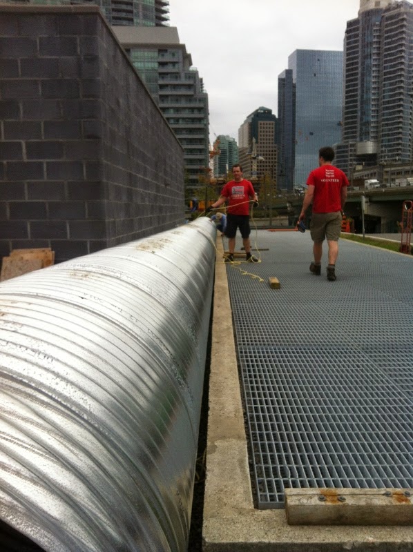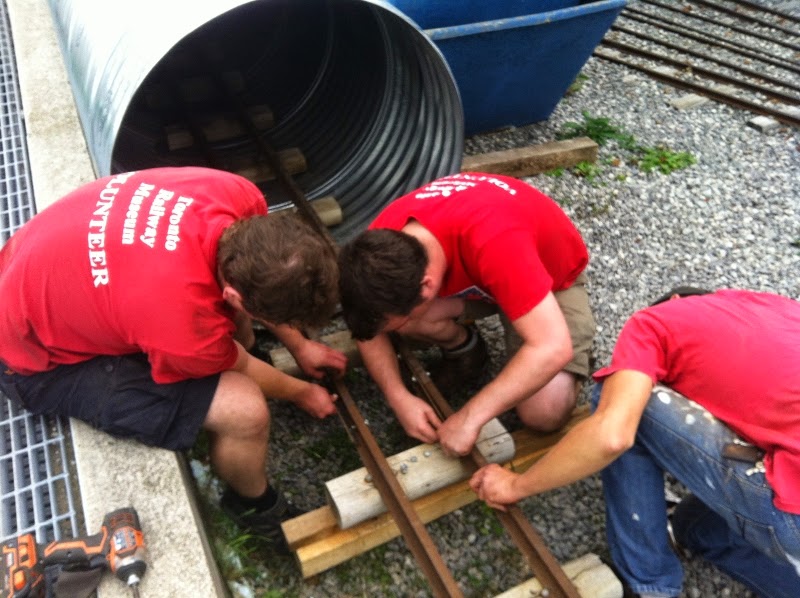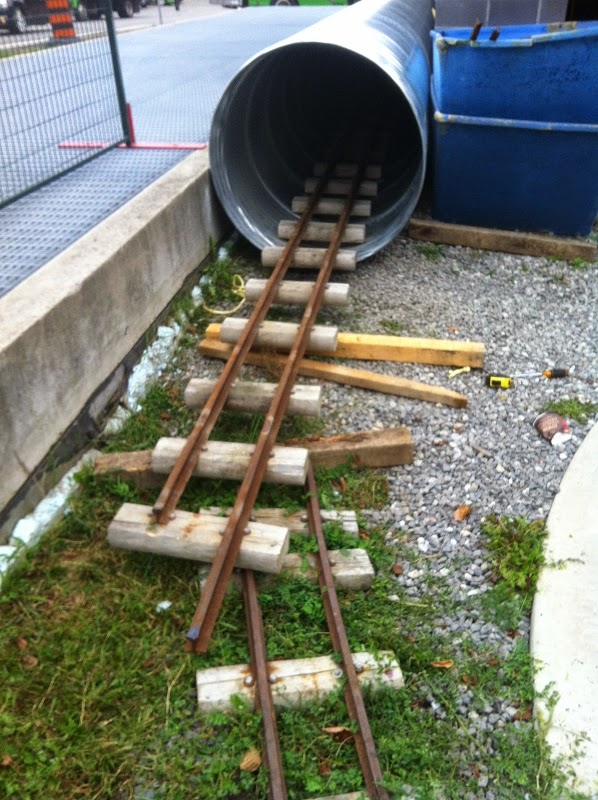 As shown in the video above and in the photos below, what may look like a model subway system is in actual fact an expansion of our train storage through the installing a culvert beside the miniature train depot. Michael Guy reports on progress as follows: