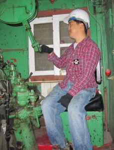 With the arrival of #6213 at the John Street Roundhouse, access to the cab is much easier. In the two pictures at the left above, we find volunteers working in the cab and also experiencing what it felt like to be in the engineer’s seat of $6213. In the right hand two pictures we see the complex array of valves and other control systems used to manage the operations of a steam locomotive. Once restored completely the “backhead: (which is what the back of the firebox/boiler that you see here is called) will look even more complex as many parts were stored safely away while the engine resided in the CNE grounds to protect them from potential vandalism. These parts have yet to be reinstalled on the backhead.