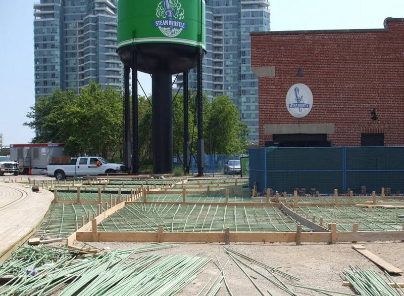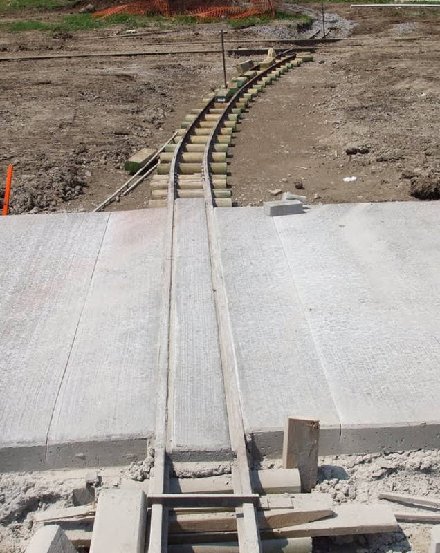 Given the usefulness of our speeder trailer cars in support of track maintenance, our team built a work car for the miniature railway. It is shown in the picture at the upper left and has been named “Chester”. In the middle photo, we see a completed miniature railway crossing of one of the concrete paths being developed in the park. In the right hand photo, we see some of the extensive concrete formwork being built throughout the park as the concrete paths are rebuilt to accommodate the new buildings, the new radial tracks and the miniature railway.