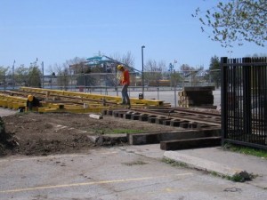 In the pictures below we see a platform being prepared unto which the locomotive tender will be rolled to provide a base for its transport to Roundhouse Park.