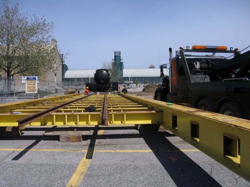 In the pictures below we see a platform being prepared unto which the locomotive tender will be rolled to provide a base for its transport to Roundhouse Park.