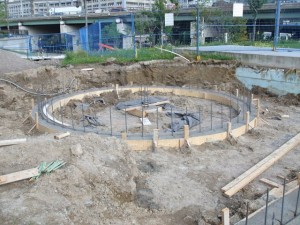 In the pictures below, we find that the foundations for the miniature railway depot building and the accompanying turntable have now been laid. In the final picture at the lower right, we find TRHA’s VP-Operations Michael Guy tossing his hat in celebration of the start of the miniature railway depot construction.
