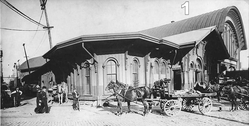 Image #1 is a view of the Great Western Railway station at the foot of Yonge Street. One well-researched book indicated that it dated from a short time after the station opened in 1866. Study the image for a while and see if you can determine why the date is wrong.