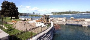 Earlier this fall, the Niagara Parks Commission moved a small narrow gauge electric box cab locomotive, located just upstream of the Horseshoe Falls to a new temporary location as part of major rehabilitation work being carried out to improve vehicular, pedestrian and cyclist traffic in Queen Victoria Park. Eventually, the locomotive will rest on its own concrete pad with an historic plaque interpreting it.