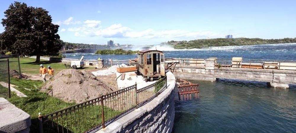 The Ice Drag, an electrically powered locomotive weighing about 16 metric tonnes (35,000 pounds), once played an important role in helping remove the ice before it could enter the forebay in front of the former Canadian Niagara Powerhouse building.