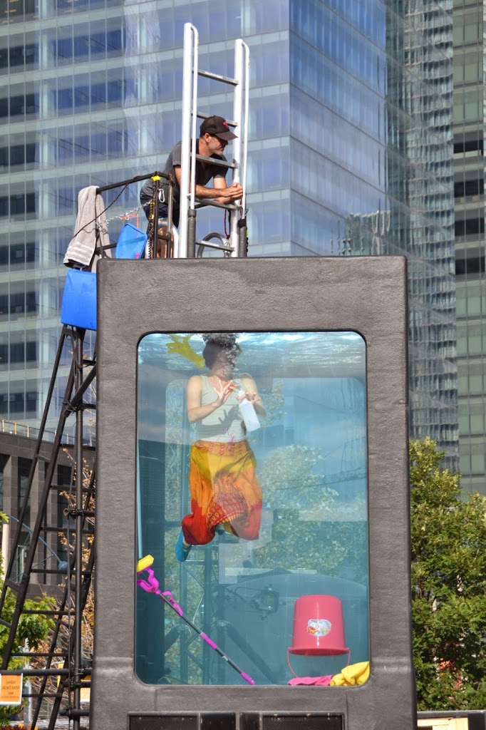 “HOLOSCENES is a performance installation that is a visceral, visual and public collision of the human body and water. The large aquarium-like sculpture — inhabited by performers — can be flooded with up to 12 tons of water in a minute.” … click here for more info