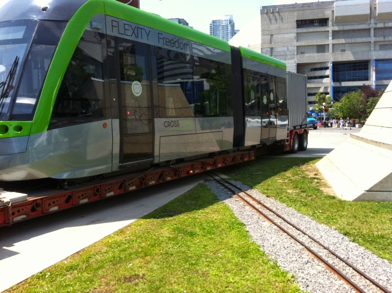 Continuing with our coverage of the Rail Safety Day event at Roundhouse Park on July 19th, we bring you some photos of Metrolinx’s Flexity LRT mockup which was open for visits all day. This vehicle is being built by Bombardier for the TTC to operate on the new Eglinton Crosstown line.