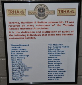 Recently, the plaque shown below was installed in the TH&B Caboose. It recognizes the large crew of volunteers who contributed their time and energy to the restoration project. Our thanks go out to all of them for their fine effort.