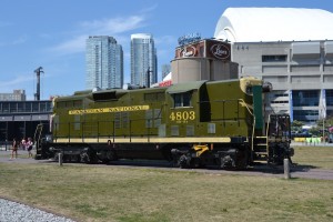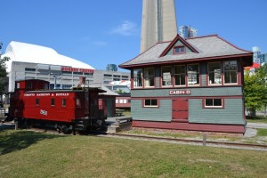 Recently, we decided for a number of reasons to reposition our engines and other rolling stock displayed within the park.  As described in this earlier posting, the major reason for doing so was to position the caboose so that we could open up both Cabin D and the caboose for interpretation on the weekends in addition to our usual attractions.  In the photos below, you can see the new views of the equipment available now in their new locations.