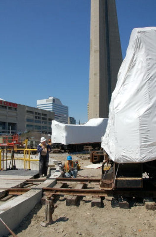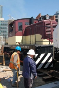 Further to our last news posting here are some photos of the TRHA crew using our Whitcomb switcher to move rolling stock around to make it possible for PNR Railworks to continue to lay the trackwork in Roundhouse Park.