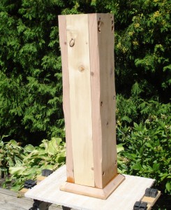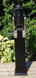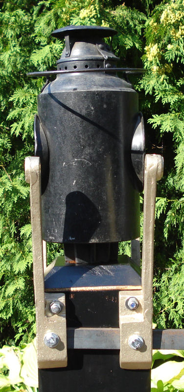 Below we see a replica train order system which John has constructed to begin rebuilding the train order signals used at Don Station. The blade and holder mounted on the train order signal is one that came from the Walmsley collection. The lantern portion is from the TRHA collection. John borrowed metal hardware from a friend who has his own train order signal and we had these parts duplicated (cast). When it is finally assembled on the roof with bell cranks and proper steel rods, it will operate in the same manner as the original did for about seventy years by pulling on handles to align the blade in the appropriate position to display the correct signal.