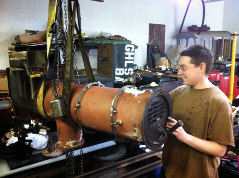 Also shown below is the ongoing major maintenance work under way on our miniature railway’s live steam locomotive. In the photo we find the boiler upside down in the air!