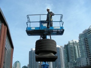 As one can see in the picture at the upper left, the roundhouse has a vast expanse of roof. Roughly half of the roof is being re-waterproofed as weather allows.