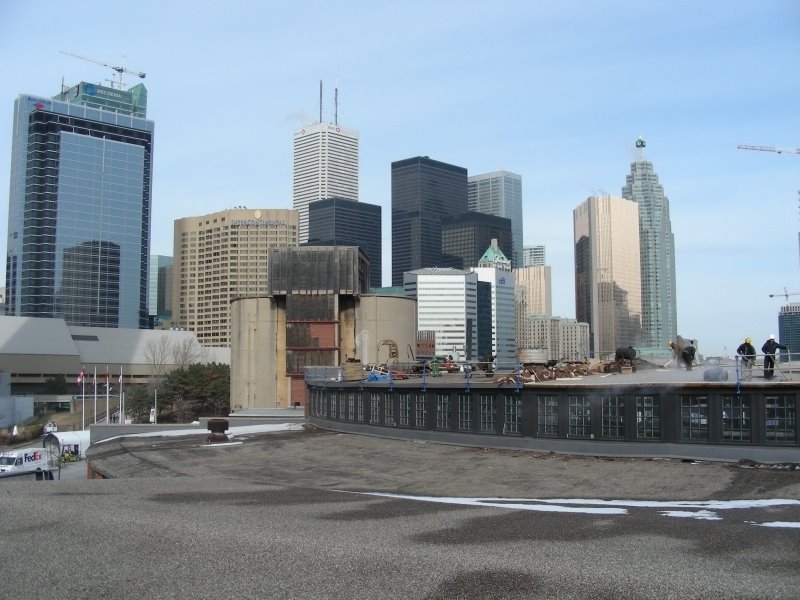 As one can see in the picture at the upper left, the roundhouse has a vast expanse of roof. Roughly half of the roof is being re-waterproofed as weather allows.