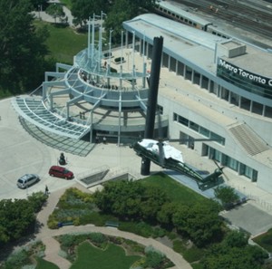 Continuing our coverage of the helicopter activity at Roundhouse Park just before the G20 Summit, these photos by Ryan De Laplante from his nearby condominium show test flights being made just prior to the event. The Marine helicopter with a white top is “Marine 1”, President Obama’s official helicopter. The helicopter-less picture at the upper left shows our equipment tucked in close to the roundhouse and out of the way of the action.