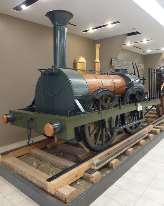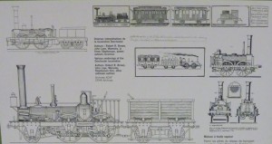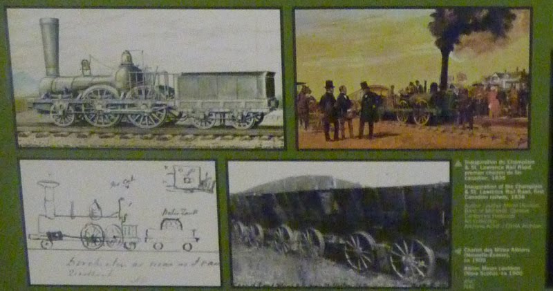 Exporail, Canada’s National Railway Museum, features the Dorchester as you enter their main museum building as shown image at the upper right. In the images below we see a collection of drawings and paintings of this first train as displayed on a plaque at Exporail.