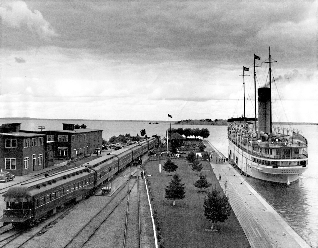 The CPR completed its branch line to Port McNicoll in 1912 and transferred its Eastern Great Lakes steamship base from Owen Sound. From May until October for the next half century, boat trains with parlor cars ran between Toronto and Port McNicoll to connect with steamships to and from Port Arthur and Fort William. Some passengers used these steamships solely for the cruising experience; others as a leisurely stage in a transcontinental journey that continued by train after the ships docked.