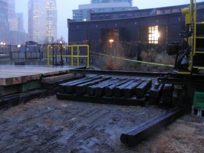 It was a dark and stormy night – no wait, wrong fairy-tale. It was a wet and muddy day at the John St Roundhouse as work continued on the turntable restoration, roundhouse interior renovations and a little track-work off in the corner. The turntable has a number of final details under way, the air motor controls need adjusting and floodlighting wiring is being installed to name just two.