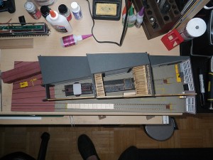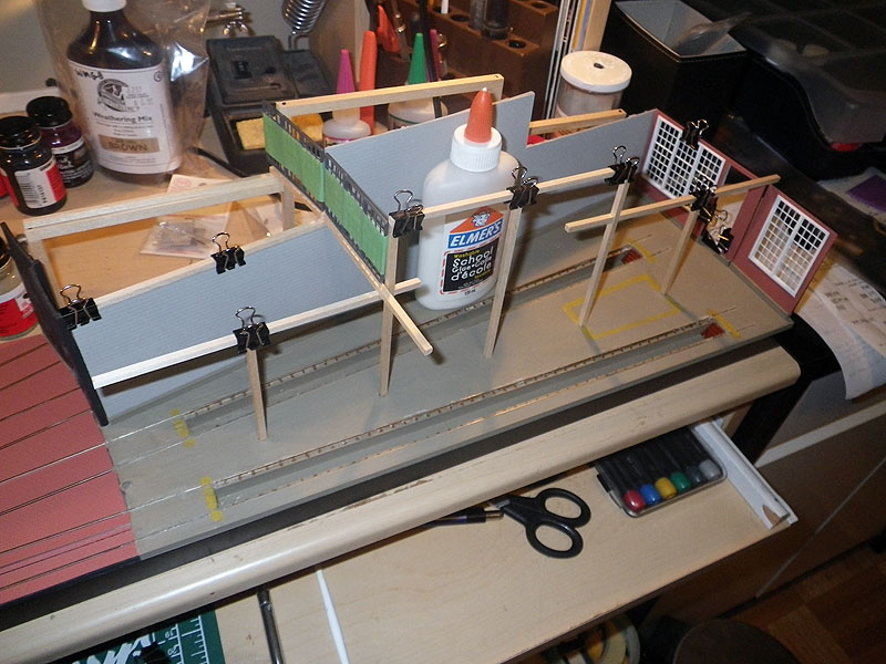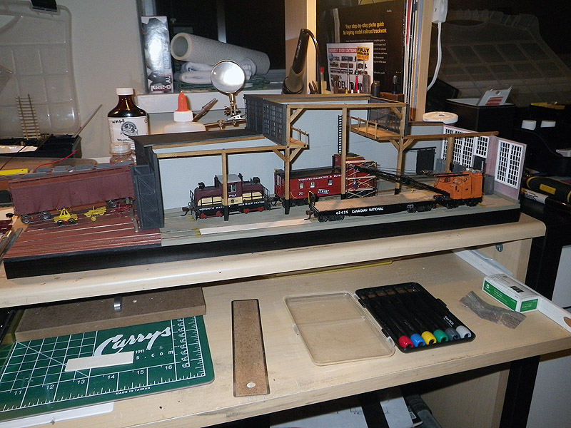 For those interested, aside from the 3D printed materials from Shapeways; an Ikea Shelf; t-Gauge track from KK Eishindo of Japan; and, drywall compound, everything else used can be acquired through local hobby shops or craft stores. Supplies from Evergreen Scale Models; Plastruct; Hunterline/Mount Albert Scale Lumber; Peco; ScaleStructures; Micro Engineering; Trueline Trains Paints; and, Floquil Paints were used for the model of the stalls.
