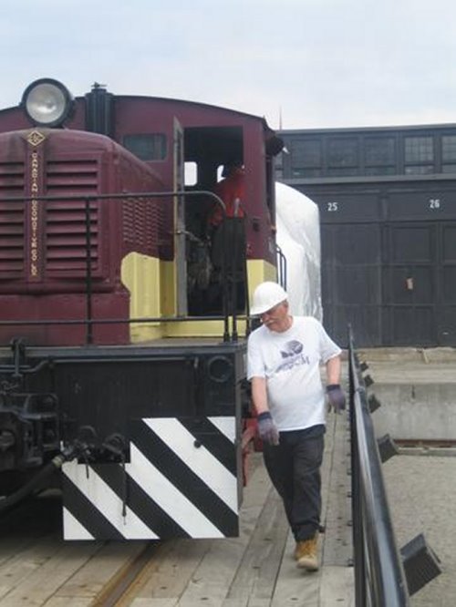 We also spend some time shunting engines #1 and #7020 around on the turntable while looking for the source of some noise from the tables centre bearing. In the picture at the left above, Lionel is acting as the brakeman for this work.