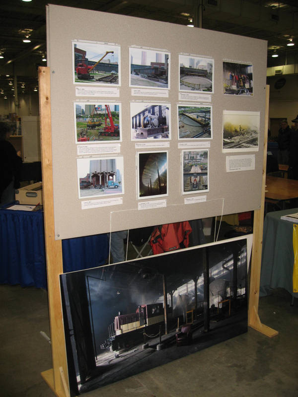 The TRHA will once again be present with our booth to make the visiting public aware of the great progress that we have made in the past year. We will also be exhibiting our Sweet Creek miniature steam engine which you can see in the picture by Stephen Gardiner at the below left being loaded onto a trailer for transport to the train show. The other pictures show parts of last year’s TRHA exhibit, our speeder on show as well as one of the Golden Horseshoe Live Steamers’ nimiature steam engines.