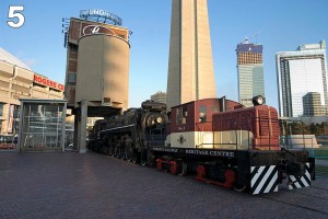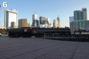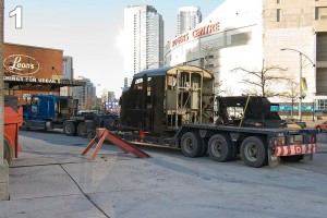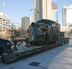 The F7 Cab has finally arrived at Roundhouse Park. In this sequence of pictures above we see the Cab arriving by float from Western Mechanical on Friday of last week. The Cab was delivered to the end of the track under the coaling tower. In the set of pictures below, our CLC Whitcomb switcher is being used to move the massive CNR Northern 4-8-4 on to the turntable and then on to to the coaling tower track to free track 34 for the delivery of the F7 on Friday. Track 34 is our loading and unloading track. The delivery process was not completed until midday so 6213 was returned to its fenced enclosure on track 34 overnight to await the move of F7 Cab to the roundhouse on Saturday.