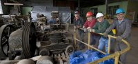 This last weekend’s work team had a really successful work bash yesterday thanks to Arno, Bob, Mike S. and Ron. In stall 17 we used Elwell to shift the yellow platform north just enough to clear the space needed for installation of our future caboose water and sanitary lines. After that, operations shifted to the machine shop where we successfully dismantled the old green dividing wall, swept the floor and moved *everything* in the room (just about) to re-organize it all and make as much space as we could. This process was assisted earlier in the week by the bricklayers removing the remaining dozen skids of “heritage” brick that were cluttering up the place.