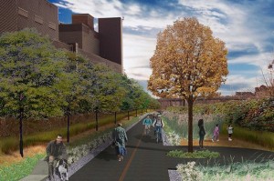 To the North and West of Roundhouse Park is an interesting new linear park development called the West Toronto Railpath. Railpath is a partnership of the Evergreen and the Community Bicycle Network who have joined forces with the City of Toronto in the planning and development of this project. Both organizations are dedicated to making environmentally friendly community-based projects happen.