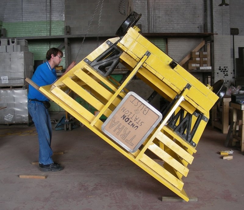 This week, Jon, Mark and Michael G. formed a small work team and addressed a number of tasks. Mark finished painting the underside of the speeder car and then assisted in turning it over as shown in the picture above.