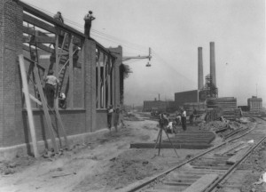 “The Canadian Pacific Railway Locomotive and Car Facilities opens at the foot of John Street, replacing an older facility first opened in 1897. The new facility was 17 feet higher, required for access to the new viaduct into Union Station. Railroaders continued to call the facility “John Street,” even though its actual connection with the street disappeared some months earlier with the dismantling of the John Street bridge across the tracks. John Street contained 43 structures, several miles of track and covered nearly 16 acres of property. It was one of only three roundhouses in Canada that exclusively serviced passenger locomotives. The engines were moved in and out of the 28-stall roundhouse on a massive 120-foot turntable, the longest in Canada. The roundhouse was the first to use the “direct steam process” where steam was pumped into the locomotives so that they did not have to have their boiler fires going in order to move in and out of the building. This created much better visibility and safer working conditions for workers and meant less smoke inhalation.